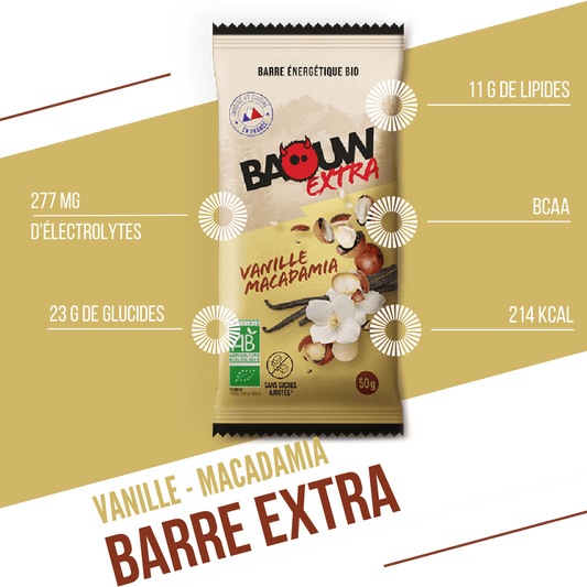 Energetická tyčinka BAOUW ORGANIC EXTRA Vanilla-Macadamia (50g)