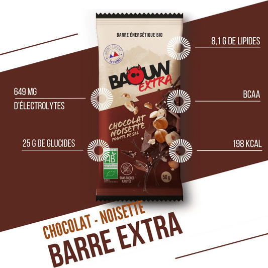 Energetická tyčinka BAOUW ORGANIC EXTRA čokoláda s lískovými oříšky (50g)