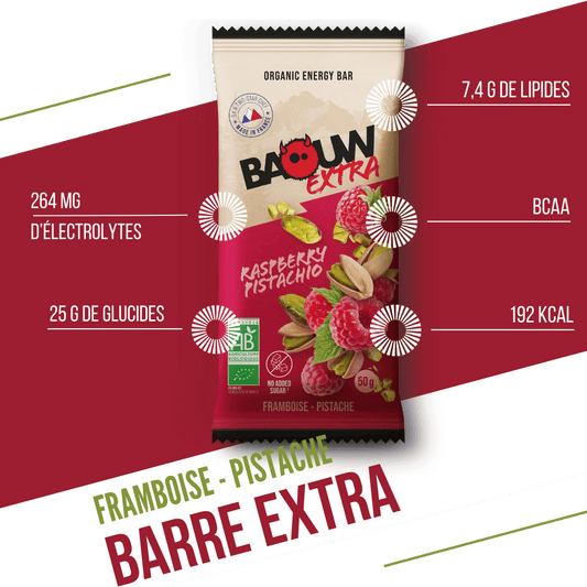 Energetická tyčinka BAOUW ORGANIC EXTRA malina-pistácie (50g)