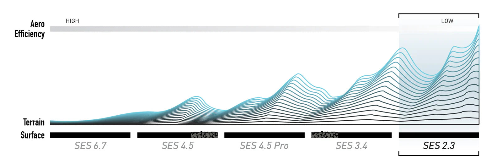It embodies the "Fast and Light" philosophy of the best climbers: eliminate every superfluous gram without compromising downhill behavior. Inspired by the proven designs of the SES 3.4, the SES 2.3 uses a differentiated approach between front and rear wheels to optimize aerodynamics according to airflow. The front wheel is designed to offer excellent crosswind stability, crucial for maintaining control in the mountains.