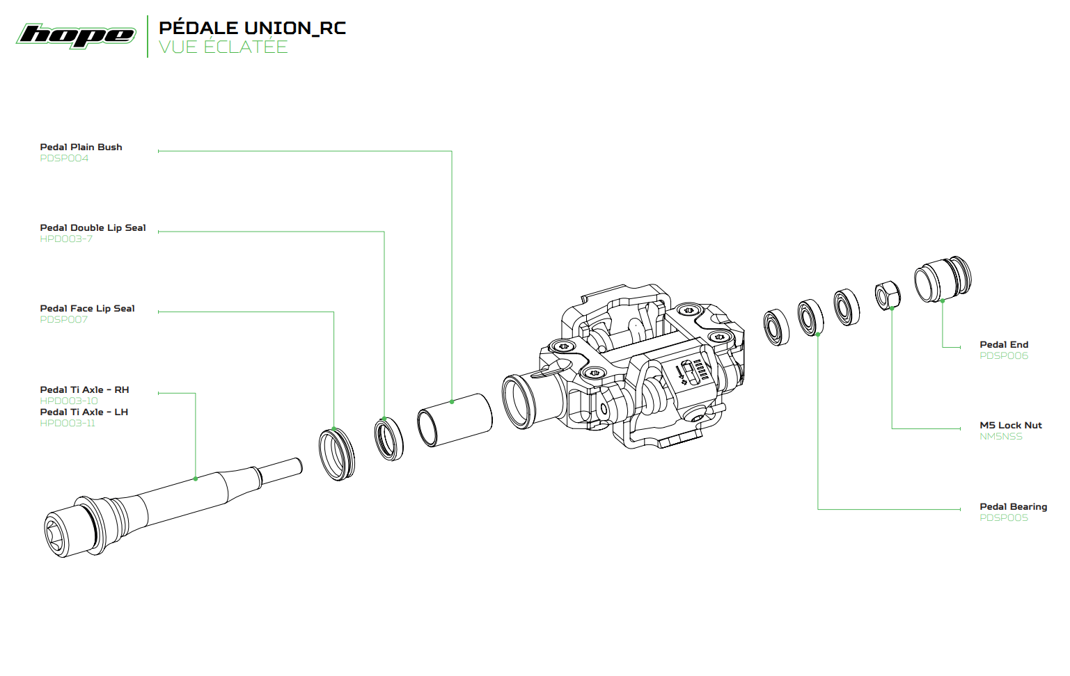 Indeed, the Hope Union pedal's construction is ultra-robust, with a shape designed for maximum strength and lightness. The minimalism of the platform combined with thetitanium axle confirm Hope's determination to make this model a must-have for your most demanding races.
