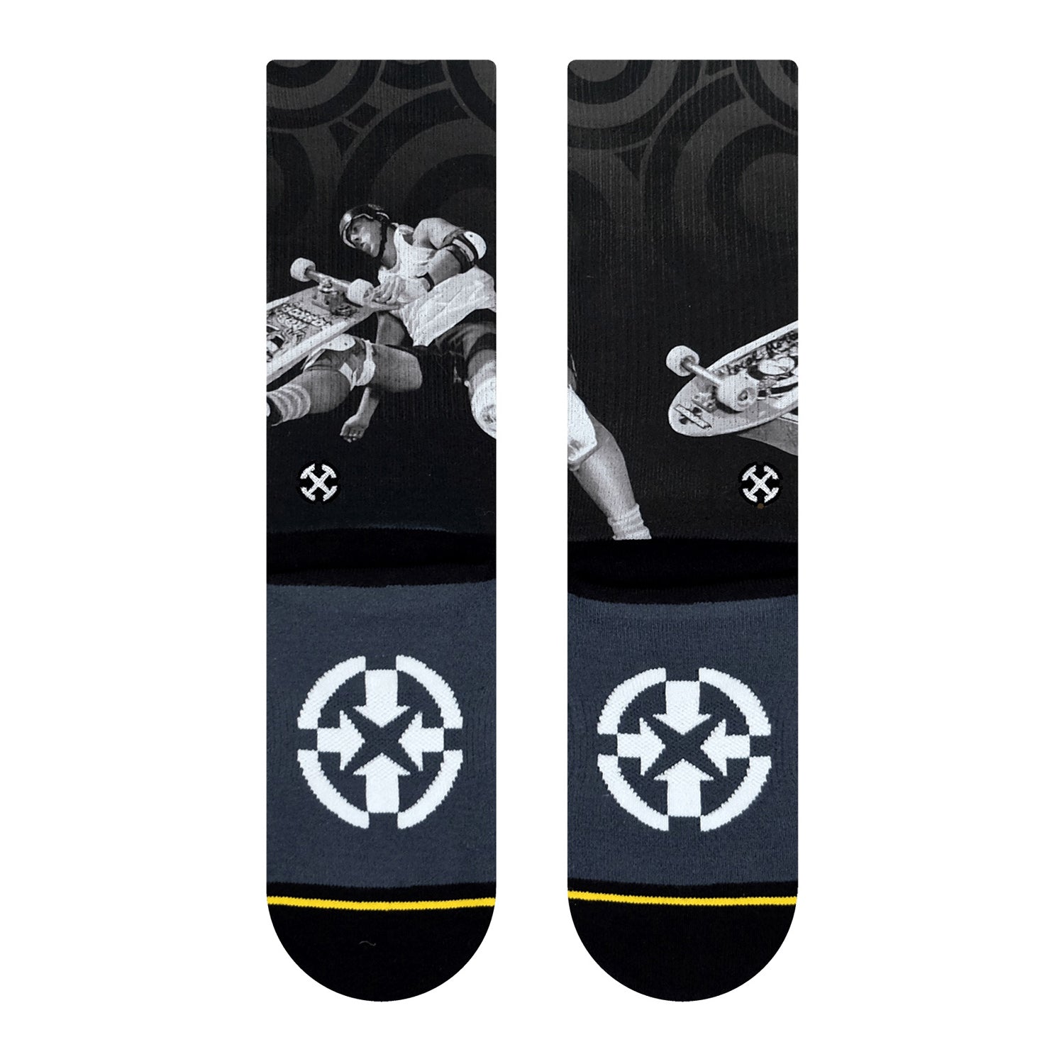 Les MERGE4 ROB ROSKOPP GRANT BRITTAIN'S socks, with illustration by Rob Roskopp, combine style and performance with unique designs that won't go unnoticed. Their seamless toe construction and Y-shaped heel ensure optimum comfort.