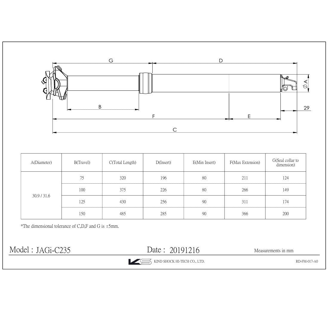 EXAFORM JAG-i Telescopic Seatpost With Controls