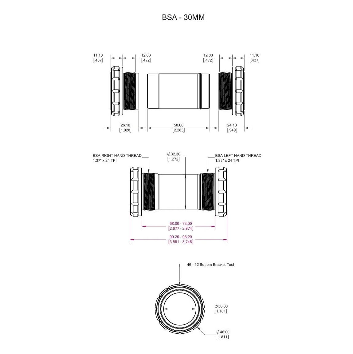 Largeurs de Boîtier Supportées : 68–73 mm (manchon interne réglable), options 83 mm et 100 mm via manchons dédiés