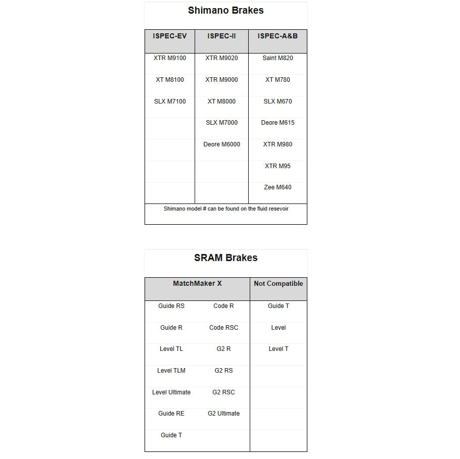 MM-ISEV est compatible avec les freins M9100, M9120, M8100 et M7100. Les freins Deore M6100 ou M4100 peuvent être montés, mais le positionnement n’est pas optimal ; ils sont donc considérés comme non compatibles.