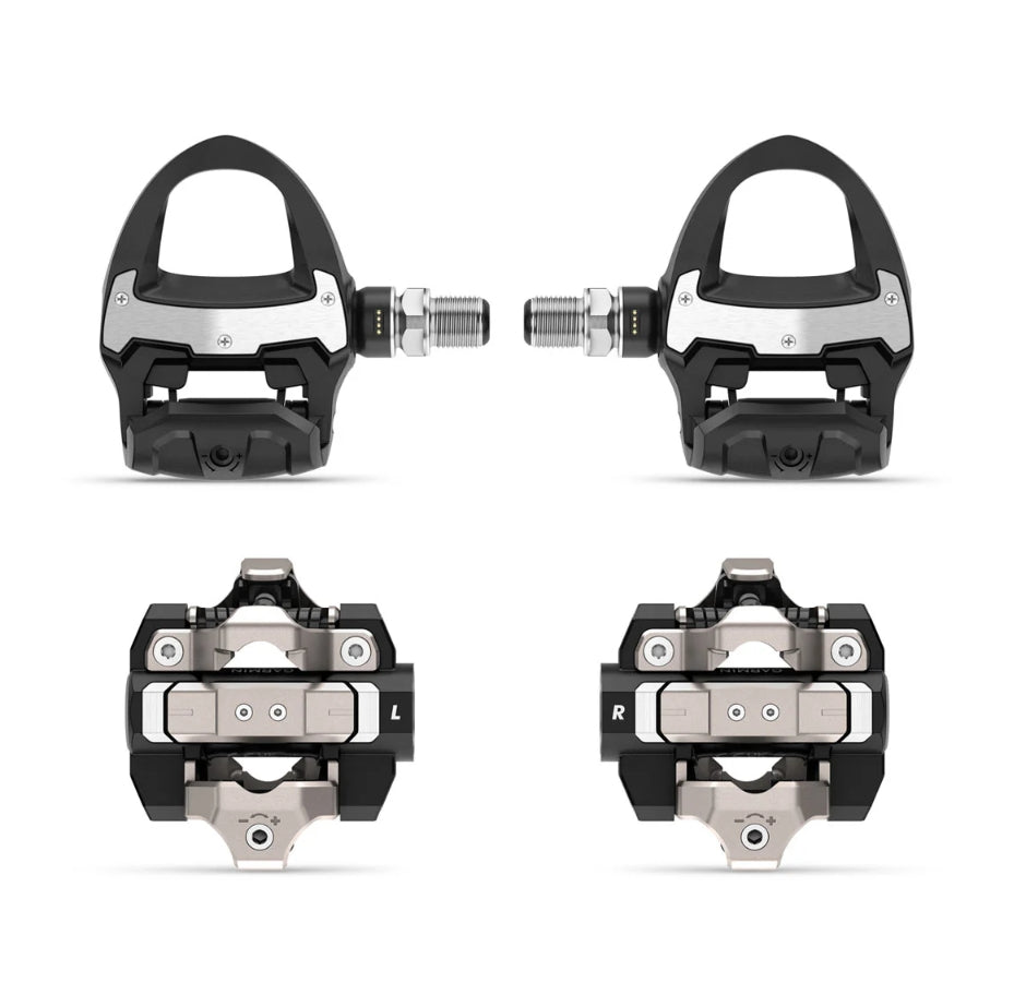 Toto kompletní balení obsahuje sadu silničních pedálů kompatibilních s cepíny LOOK KEO, těla pedálů MTB/Gravel kompatibilní s cepíny SHIMANO SPD a dva snímače výkonu pedálů. Výsledkem je jedinečný, flexibilní systém, který lze snadno přenést z jednoho kola na druhé, aniž by byla ohrožena přesnost údajů.